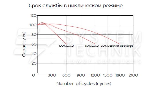 - Срок хранения без подзаряда: 6 мес. при 25°C;