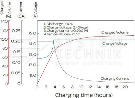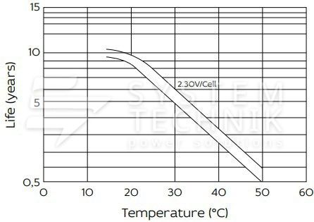 - Срок хранения без подзаряда: 6 мес. при 25°C;