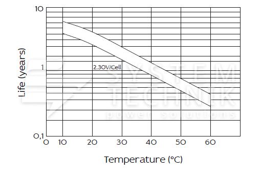 - Срок хранения без подзаряда: 6 мес. при 25°C;