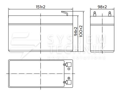 - Срок хранения без подзаряда: 6 мес. при 25°C;