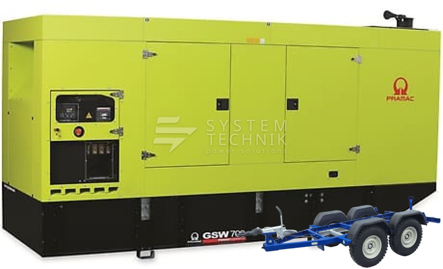 - Дизельный генератор Pramac GSW 700 M 440V В кожухе на прицепе